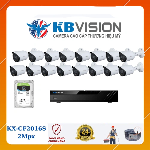 Lắp Trọn bộ 16 Camera Quan Sát Full Color 2MP Kbvision